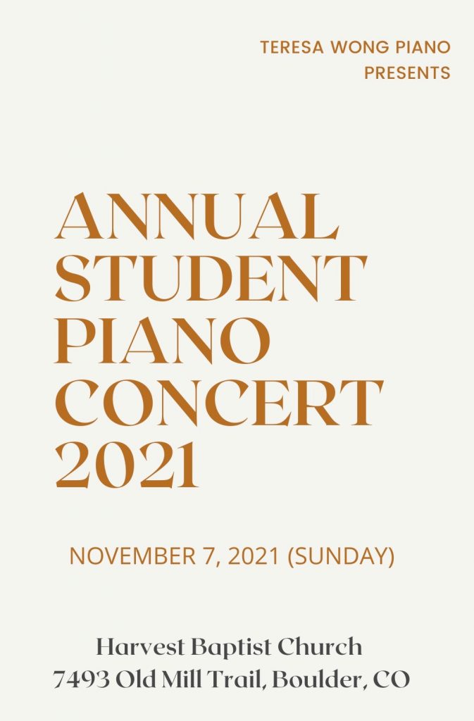 I congratulate all of my student performers who played in the concert last Sunday. It was amazing to see everyone perform in person once again after almost two years of online concert performances!