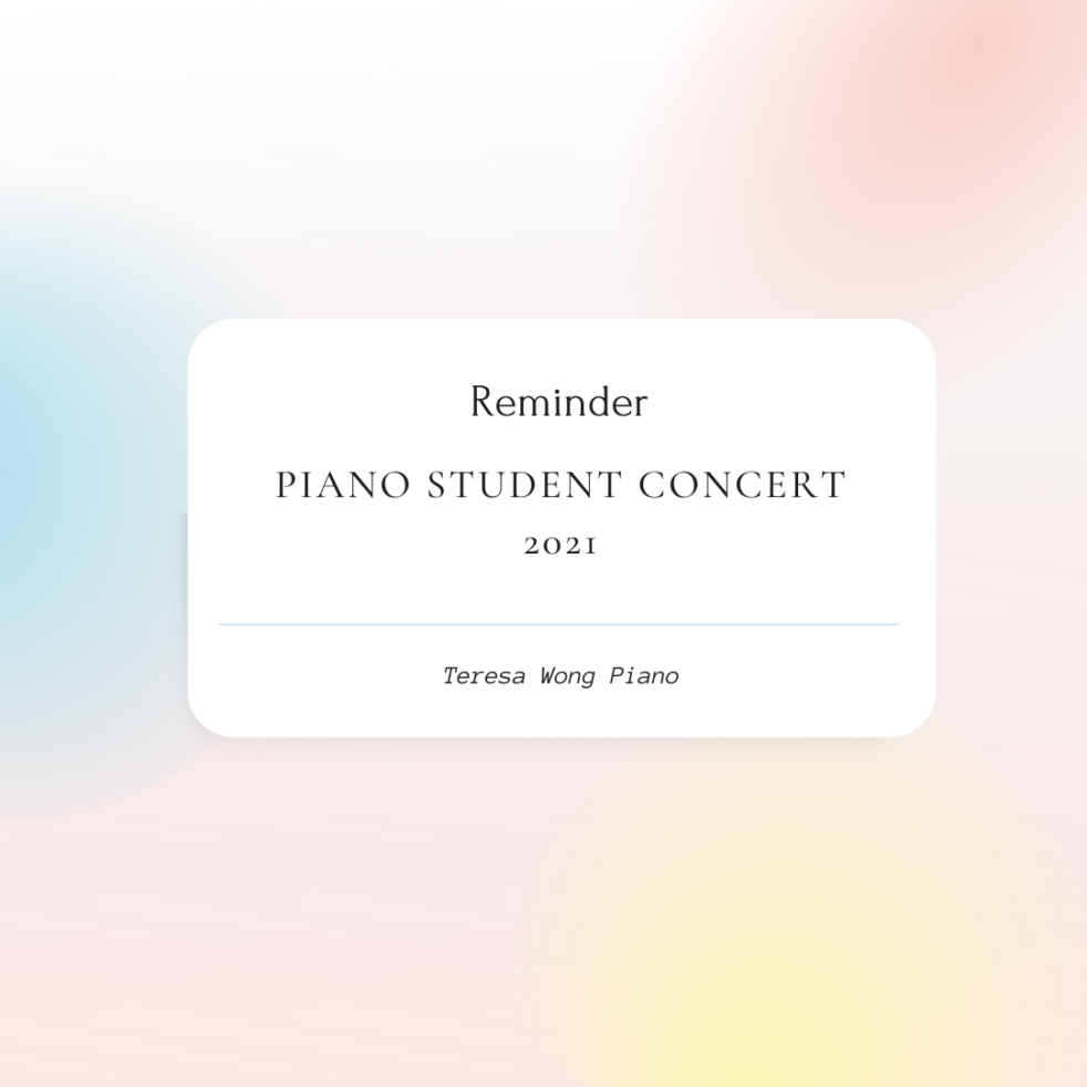 I sure hope everyone is enjoying my piano lessons and all the activities we’ve done so far. It’s been my privilege to get to know everyone of you and get connected. My goal is to bring this wonderful gift of piano/music into your lives, and that such gift would grow and flourish in your heart, to accompany you in this beautiful music journey of yours.